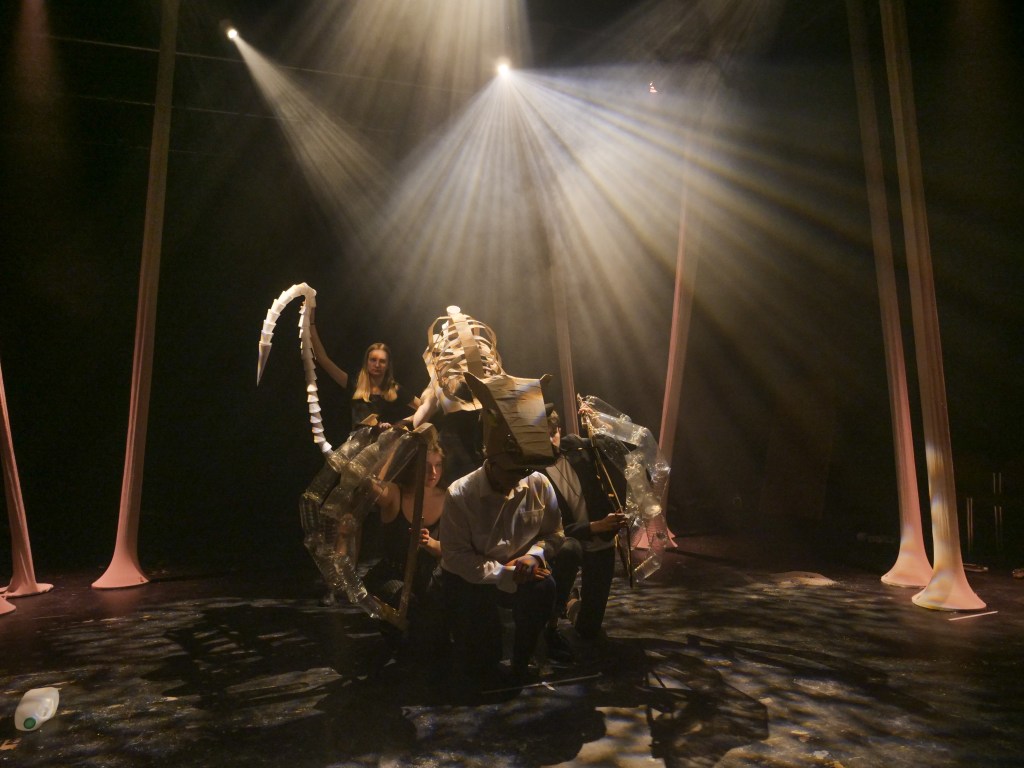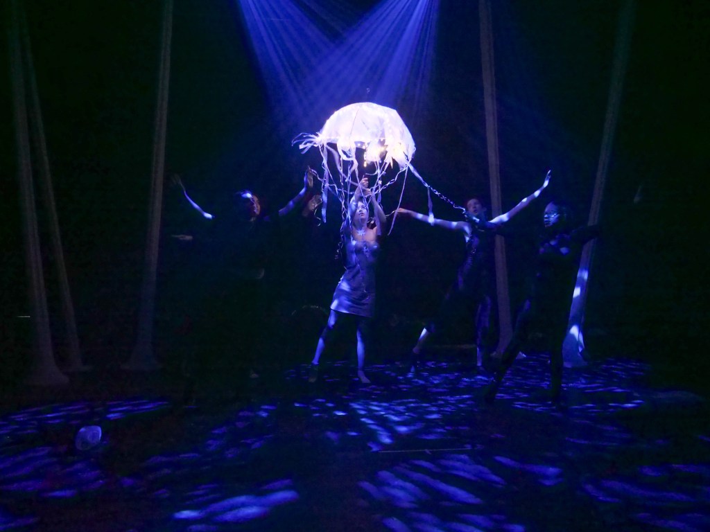In the end, with lecturers’ input, we devised a new concept we agreed to make our performance about a drowning sailor that transforms into a jellyfish using physical theatre. Although we removed the comic elements, what remained was a beautiful scenic piece with the physicality of bodies moving like the soundscape you experience in the ocean.
