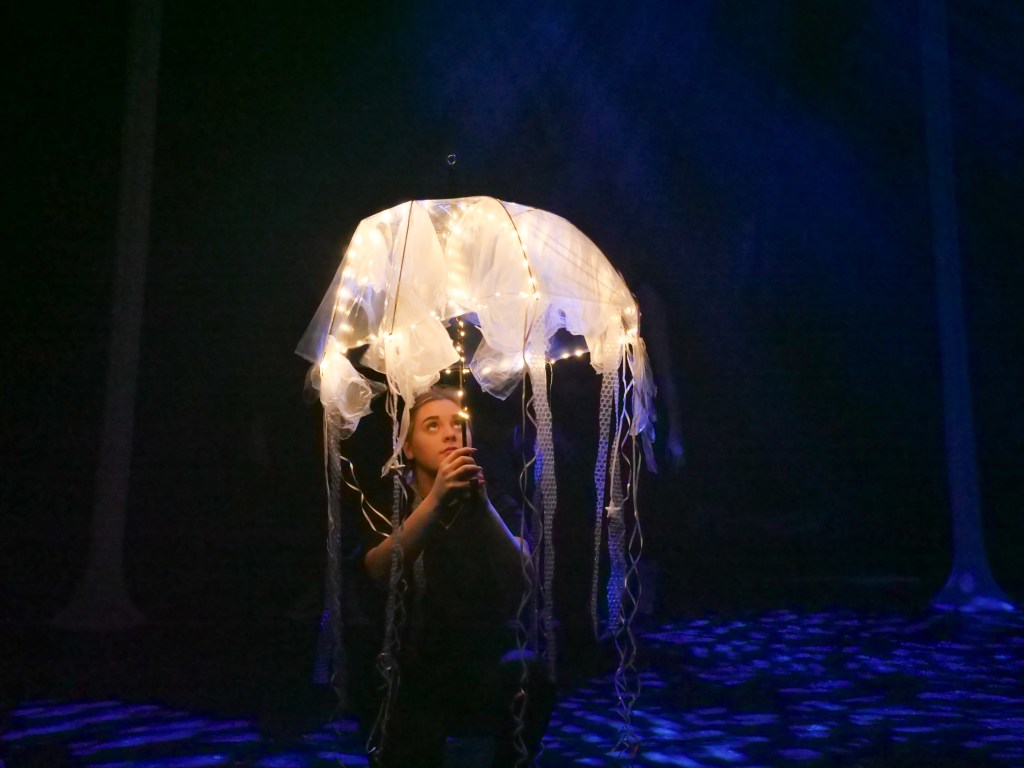In the end, with lecturers’ input, we devised a new concept we agreed to make our performance about a drowning sailor that transforms into a jellyfish using physical theatre. Although we removed the comic elements, what remained was a beautiful scenic piece with the physicality of bodies moving like the soundscape you experience in the ocean.